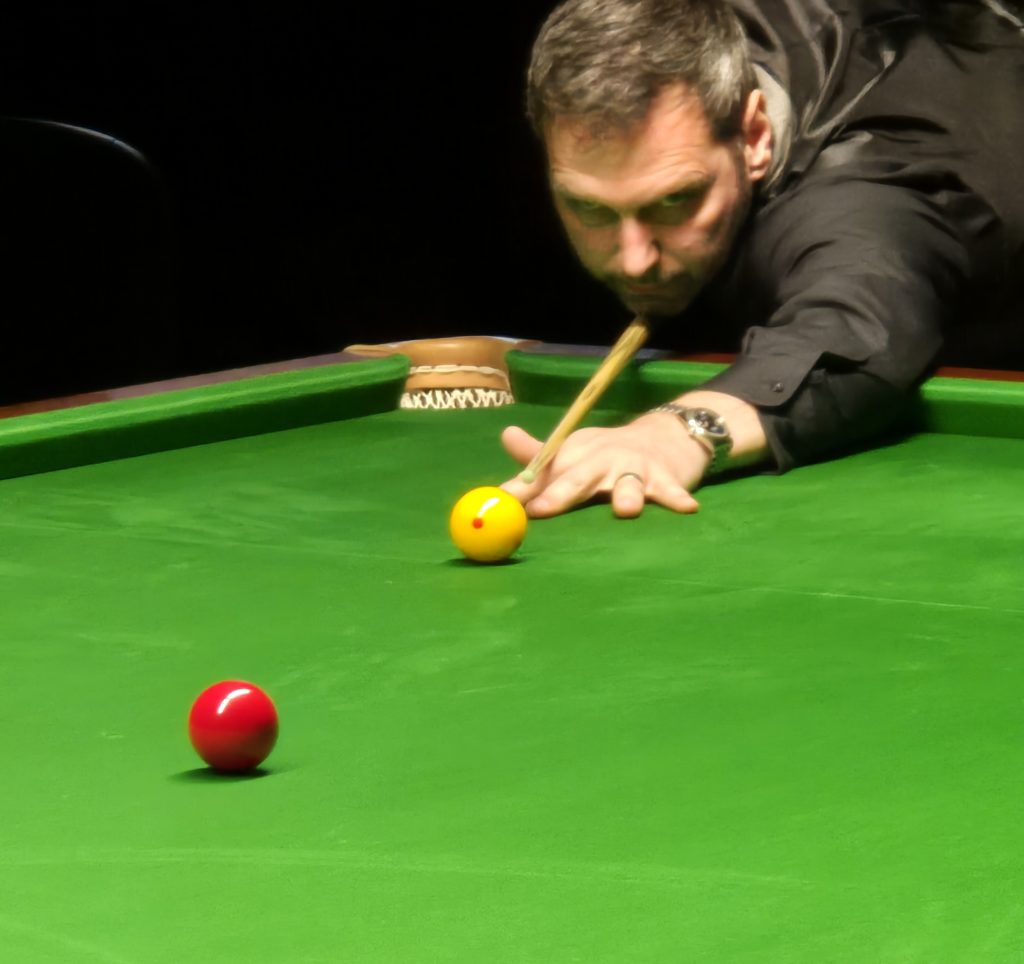 With the mid session break due at the 250 stage, Clayton found some form and had a 30 and an immediate 29 break to make the scores 272 – 189 in his favours.