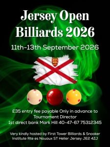 The annual Jersey Billiards Open will be taking place commencing Friday 11th September through to Sunday 13th September at the